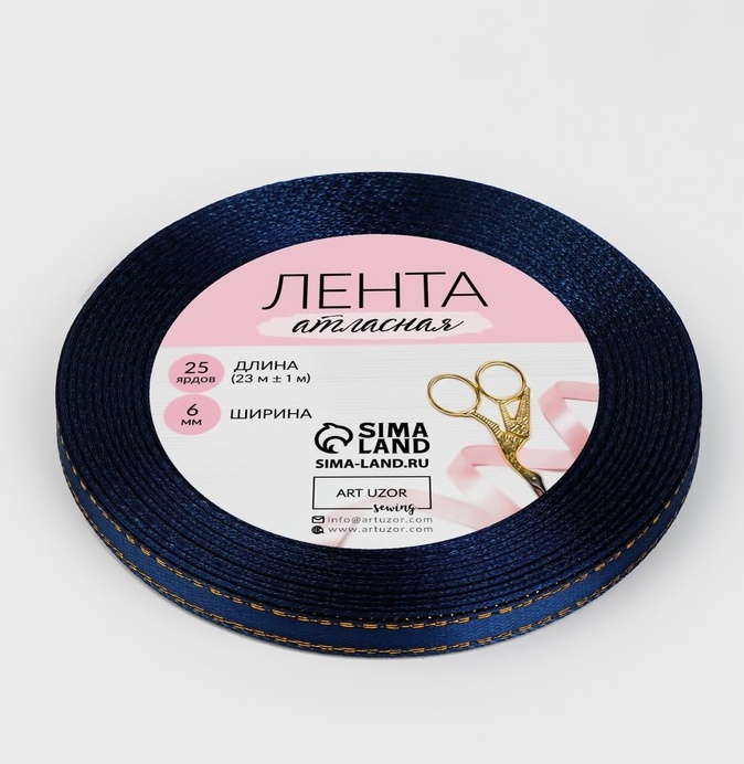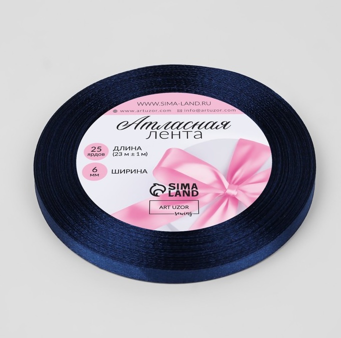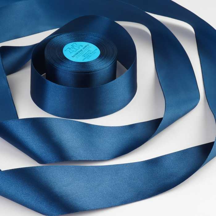 Лента атласная, тёмно-синяя