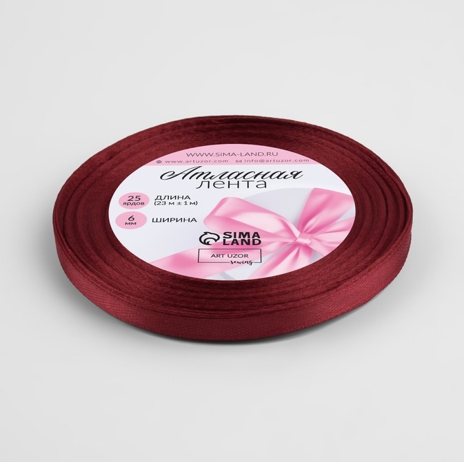 Лента атласная, цвет бордовый №48