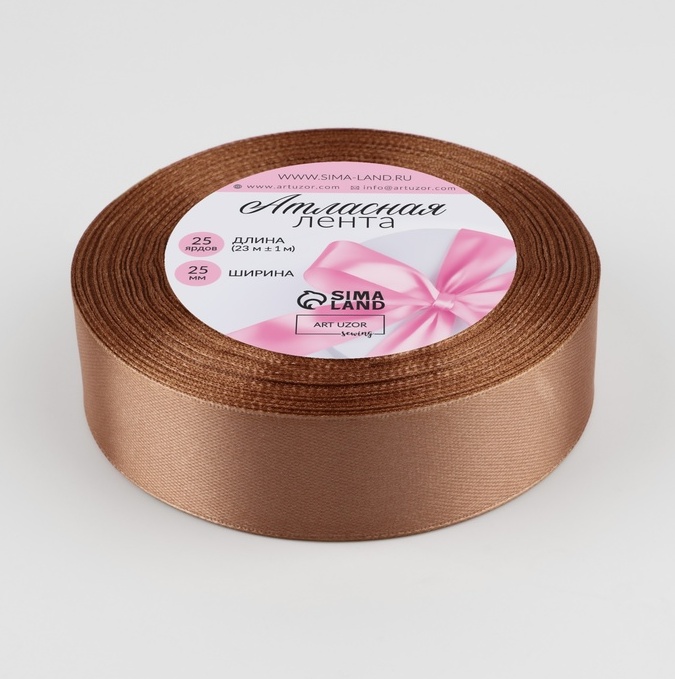 Лента атласная, цвет светло-коричневый №136