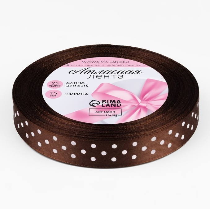 Лента атласная, тёмно-коричневая
