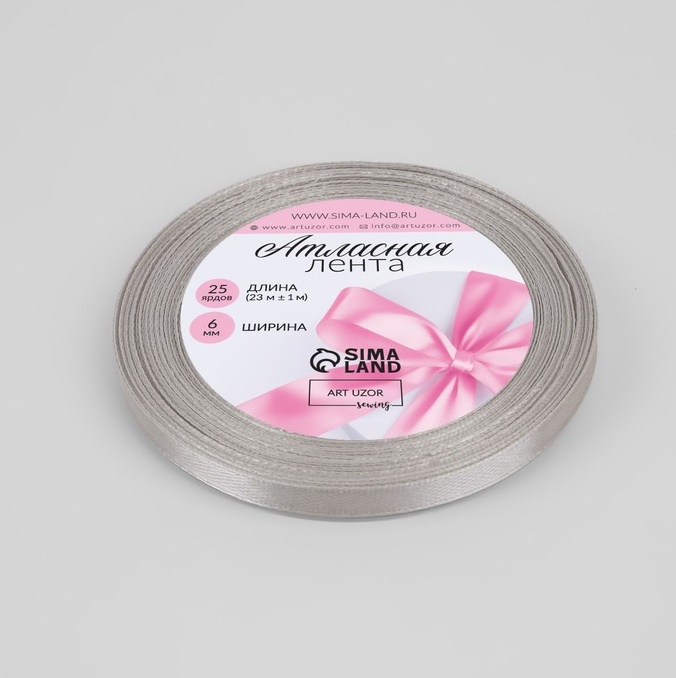 Лента атласная, цвет светло-серый №179