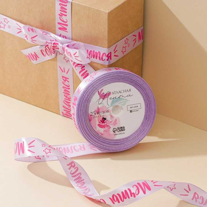 Лента атласная «Мечты сбываются», лавандовая