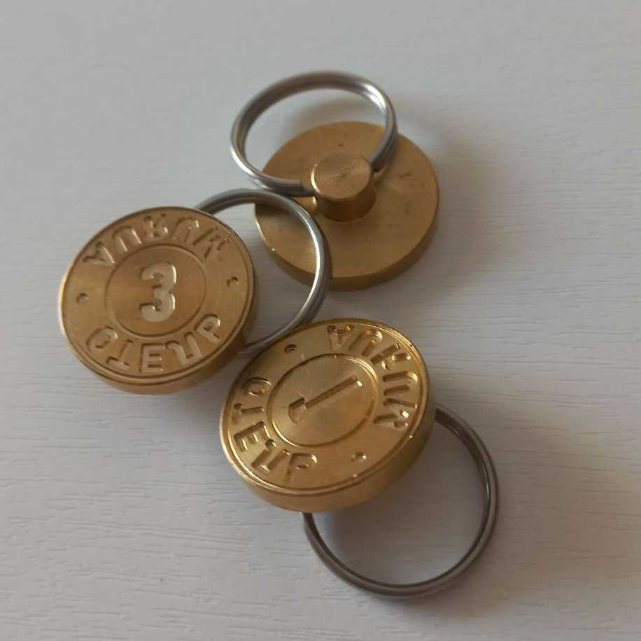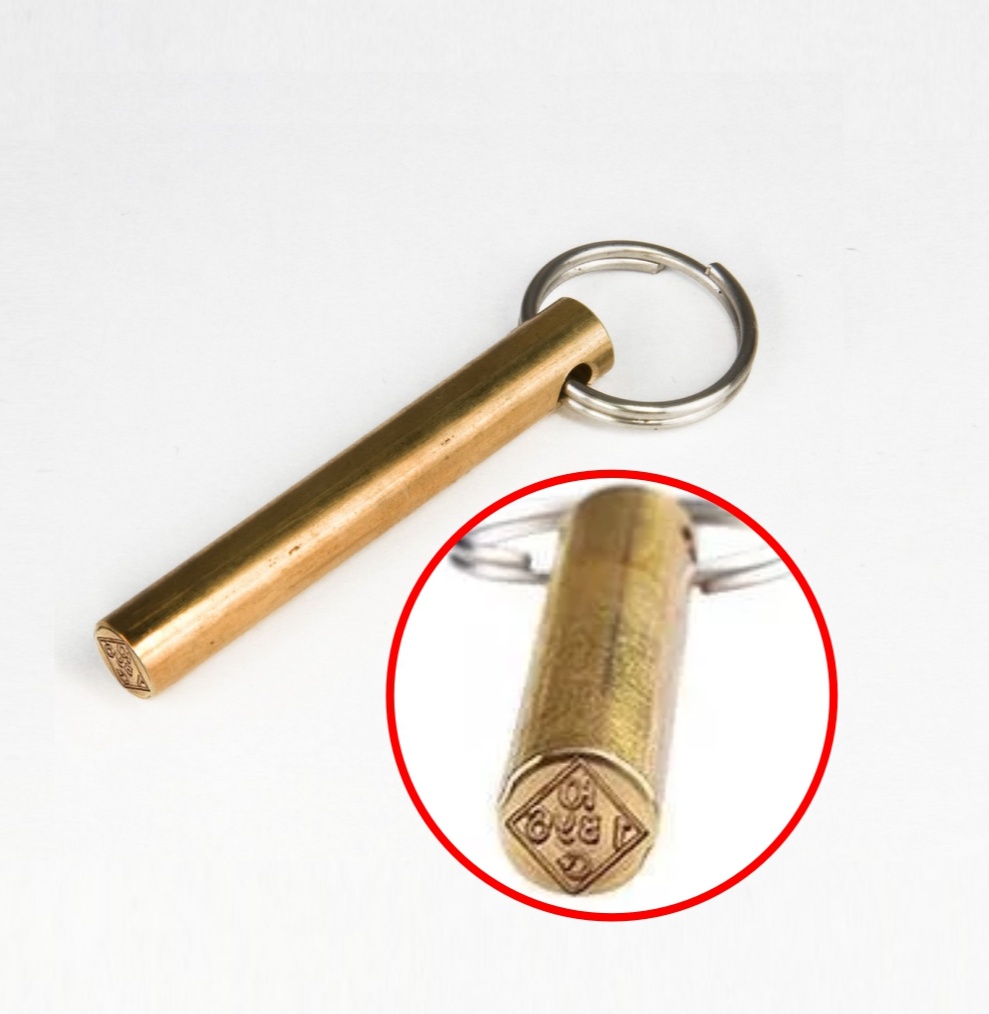 Латунная печать для опечатывания помещений, сейфов, шкафов. Используется совместно с опечатывающим устройством внутрь которого помещен пластилин. На плоскую сторону пломбира наносится гравировка, благодаря которой на пластилине проставляется оттиск .